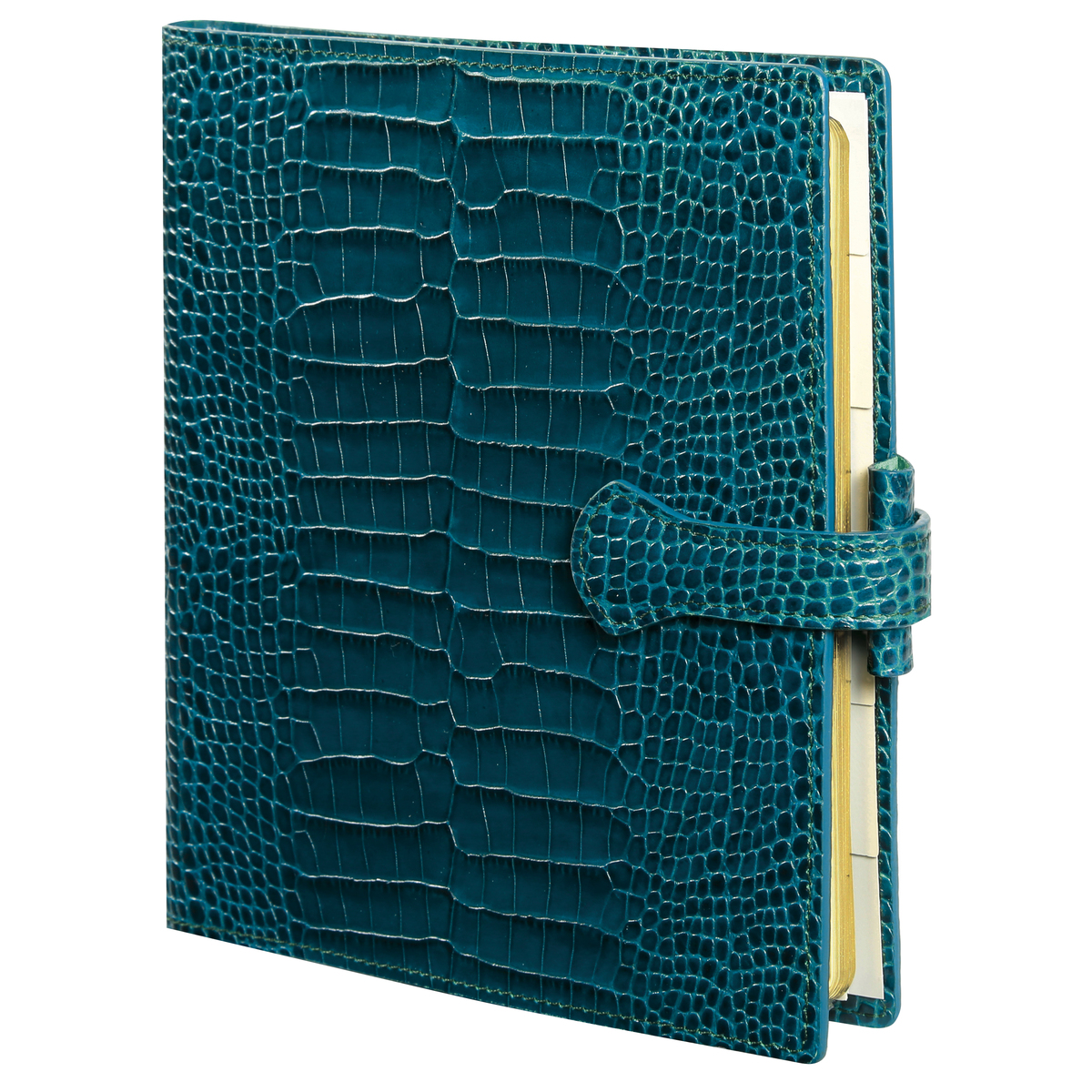 Semaine sur 2 pages. Reliure open ring. Cuir de veau pleine fleur. Jeu d'écailles à effet croco. Livré avec recharge 2026.