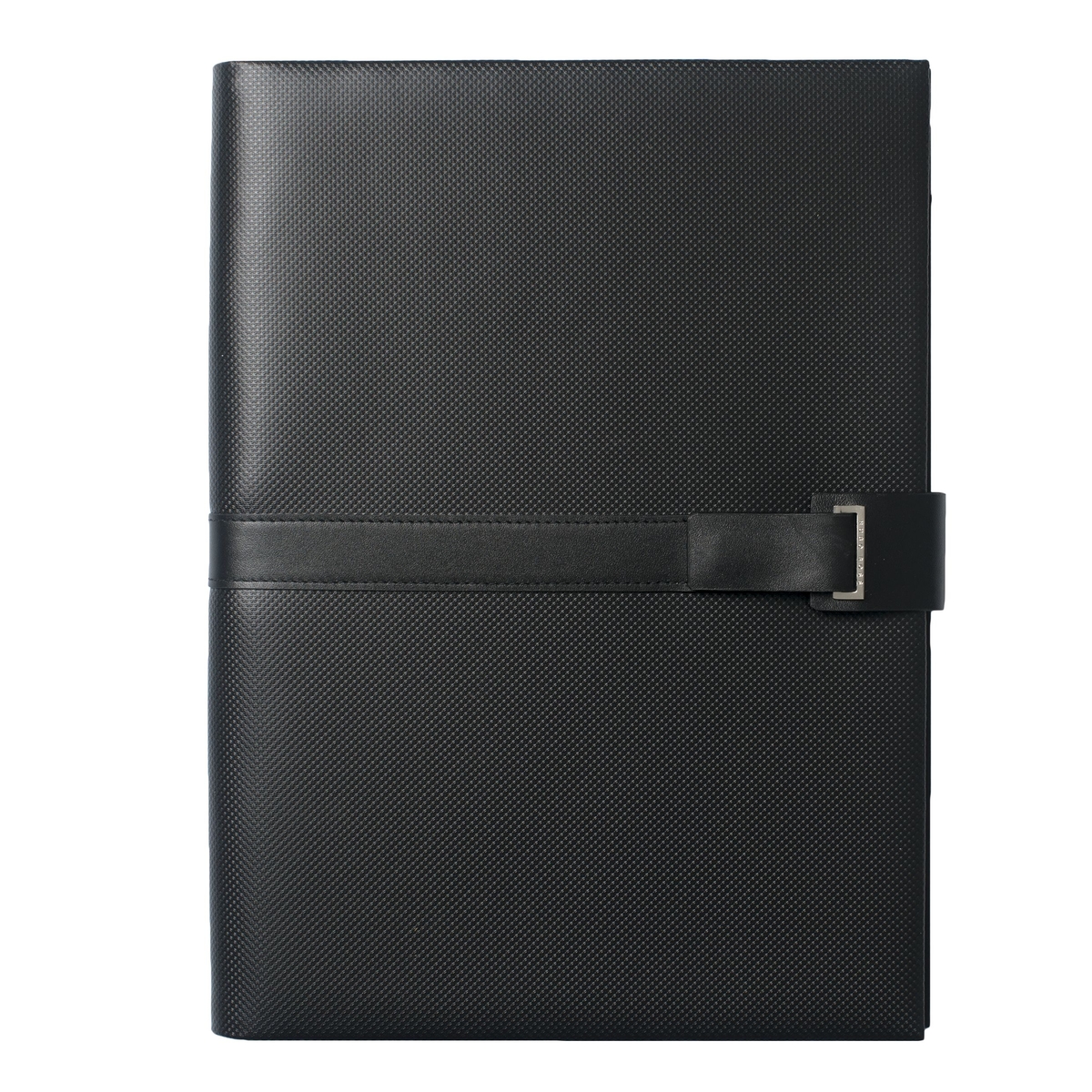 Cuir pleine fleur noir. Dimensions : 315 x 235 x 20 mm. Poids : 550 g.