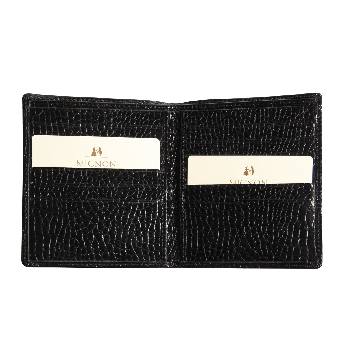 Poche porte-feuille, 12 emplacements cartes de crédit. Cuir de veau pleine fleur. Jeu d'écailles à effet croco.