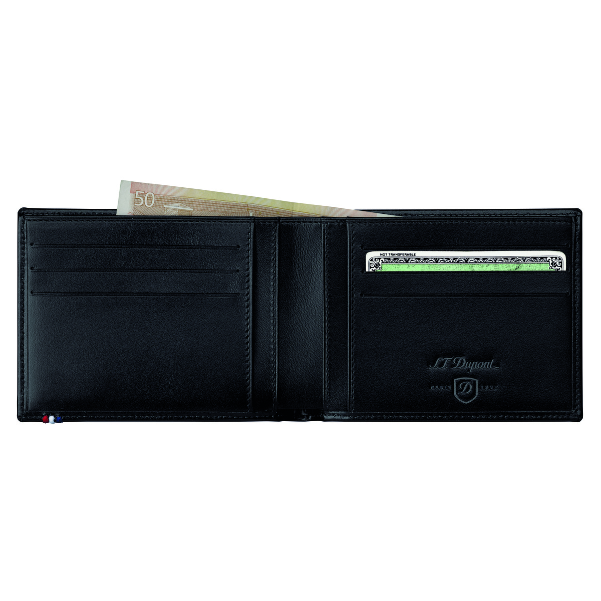 Porte-billets comprenant 6 cartes de crédit, 2 poches pour papiers d'identité, 2 grandes poches plaquées, 2 compartiments pour les billets. Dimensions : 9,2 x 12,2 cm