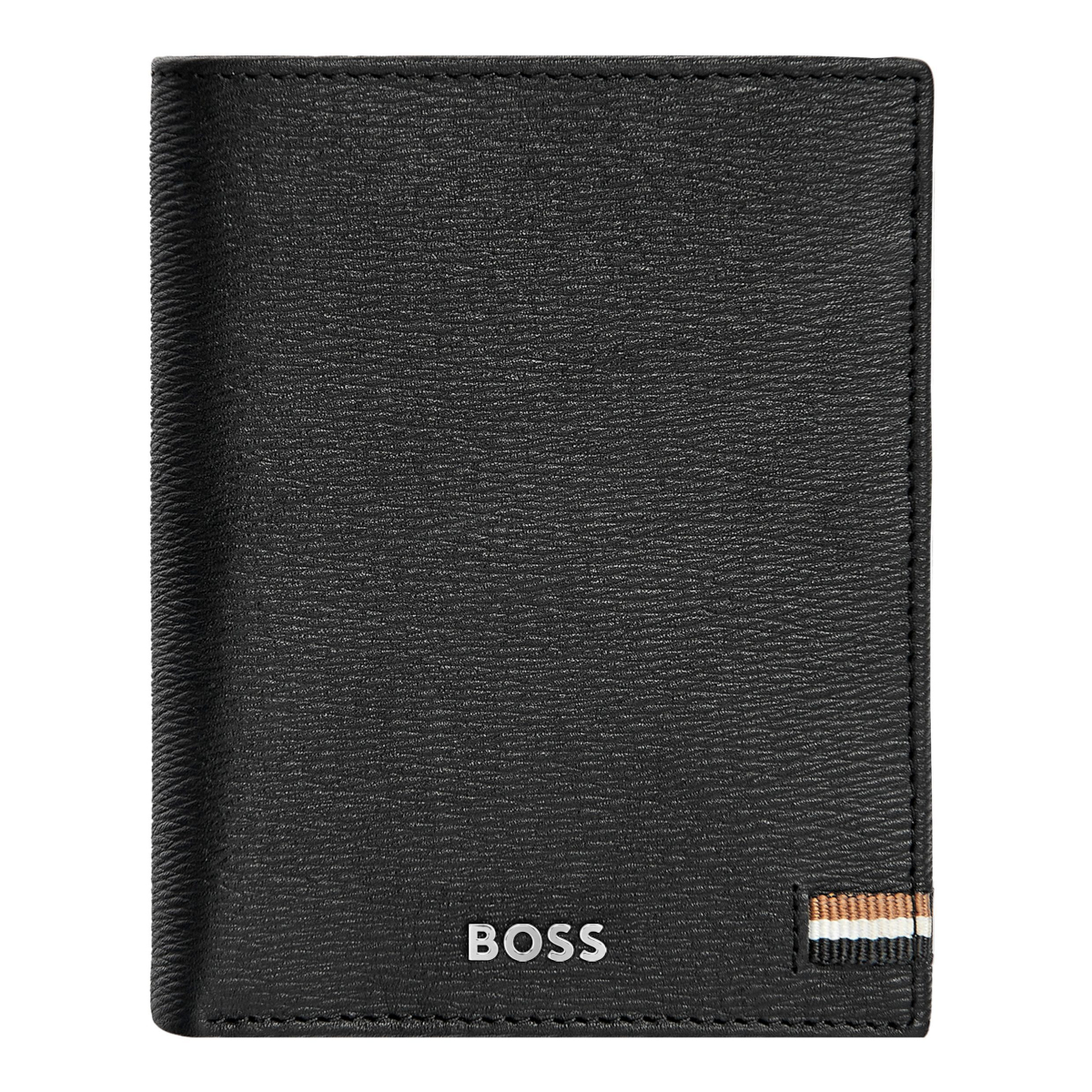 Ce portefeuille vertical avec rabat et pochette à monnaie est réalisé en cuir texturé noir de première qualité soigneusement sélectionné. Il est orné d'une luxueuse plaque de signature BOSS chromée et d'une doublure intérieure monogrammée. Cette version emblématique se distingue également par le drapeau tricolore en textile qui orne tous les articles de cette série Le portefeuille comprend 2 compartiments à monnaie 8 emplacements pour cartes 5 compartiments latéraux 1 fente pour la monnaie Conformément à l'ADN de la marque BOSS, il est simple, fonctionnel, élégant et minimal.