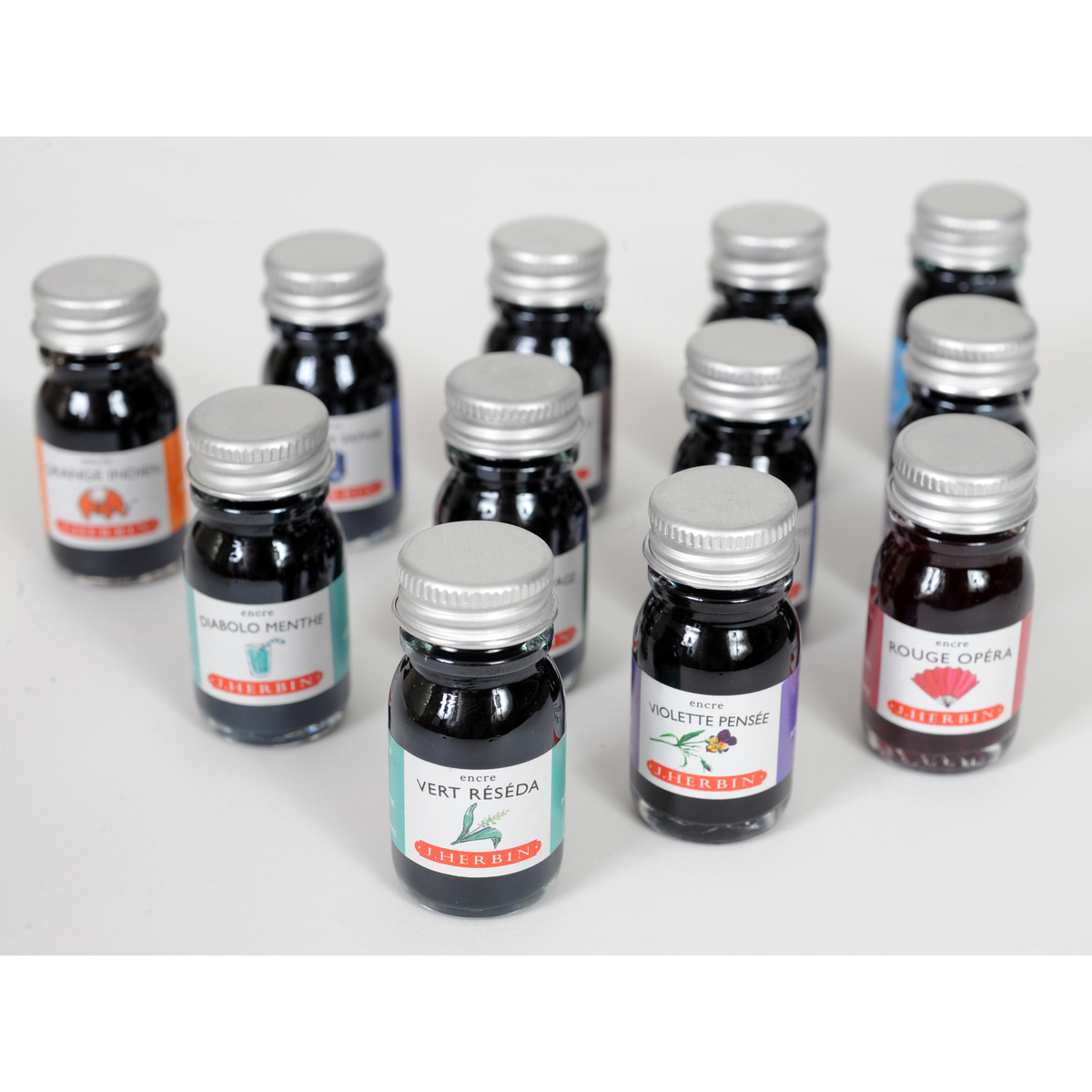 Une encre pour stylo est un subtil équilibre entre la retenue sur la plume et la dépose sur le papier. Tantôt lumineuse, discrète ou intense, l'encre couchée sur le papier doit rester stable avec le temps. Les encres H. Herbin sont principalement composées d'eau, d'humectant afin de limiter le séchage au niveau de la plume et de conservateur pour préserver leurs qualités dans le temps. Les colorants utilisés ont spécialement été sélectionnés pour offrir la gamme de couleur la plus riche du marché.