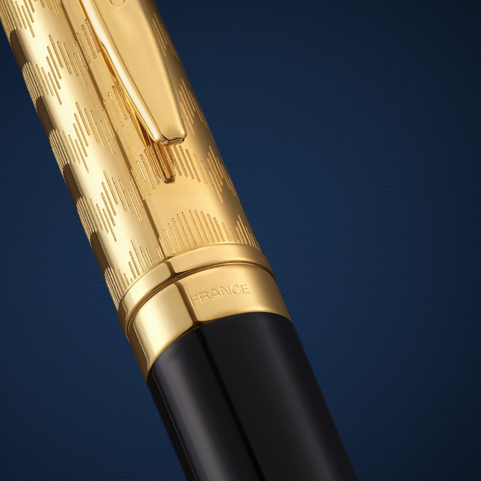 Le design fin et élégant de l’Hémisphère et la laque noir intense de son corps s’accordent à la perfection avec ses finitions plaqué or et son capuchon finement travaillé.