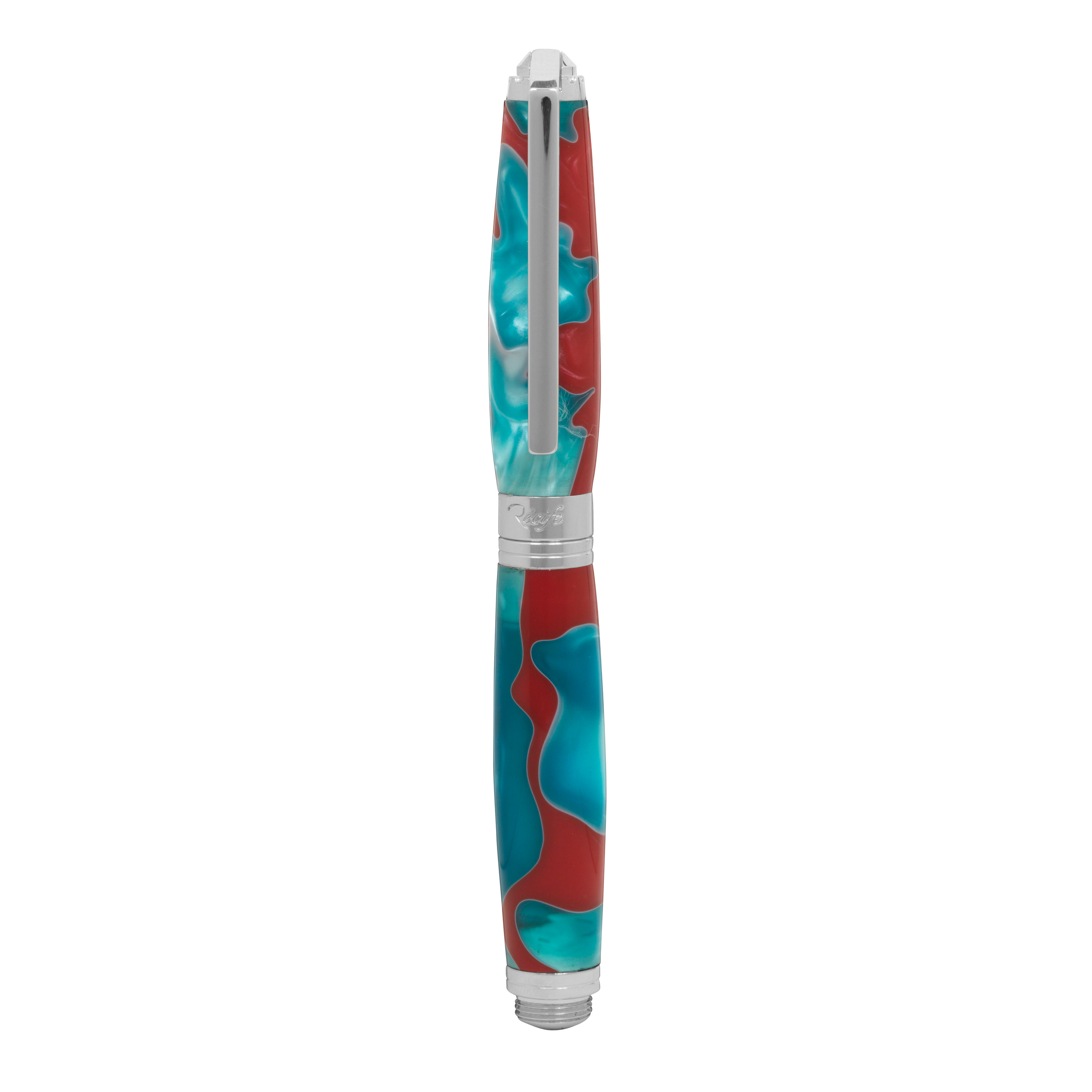 Rollerball à capuchon. Résine Rouge Turquoise.