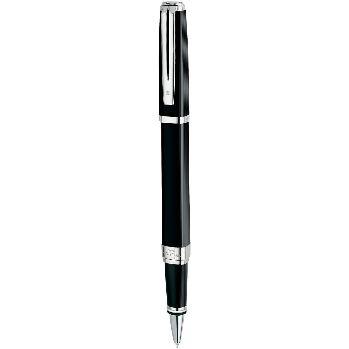 Rollerball. Laque noire et filets plaqués argent. Un instrument d'écriture élégant, chic et contemporain. Livré dans son écrin luxe et avec sa garantie Waterman.