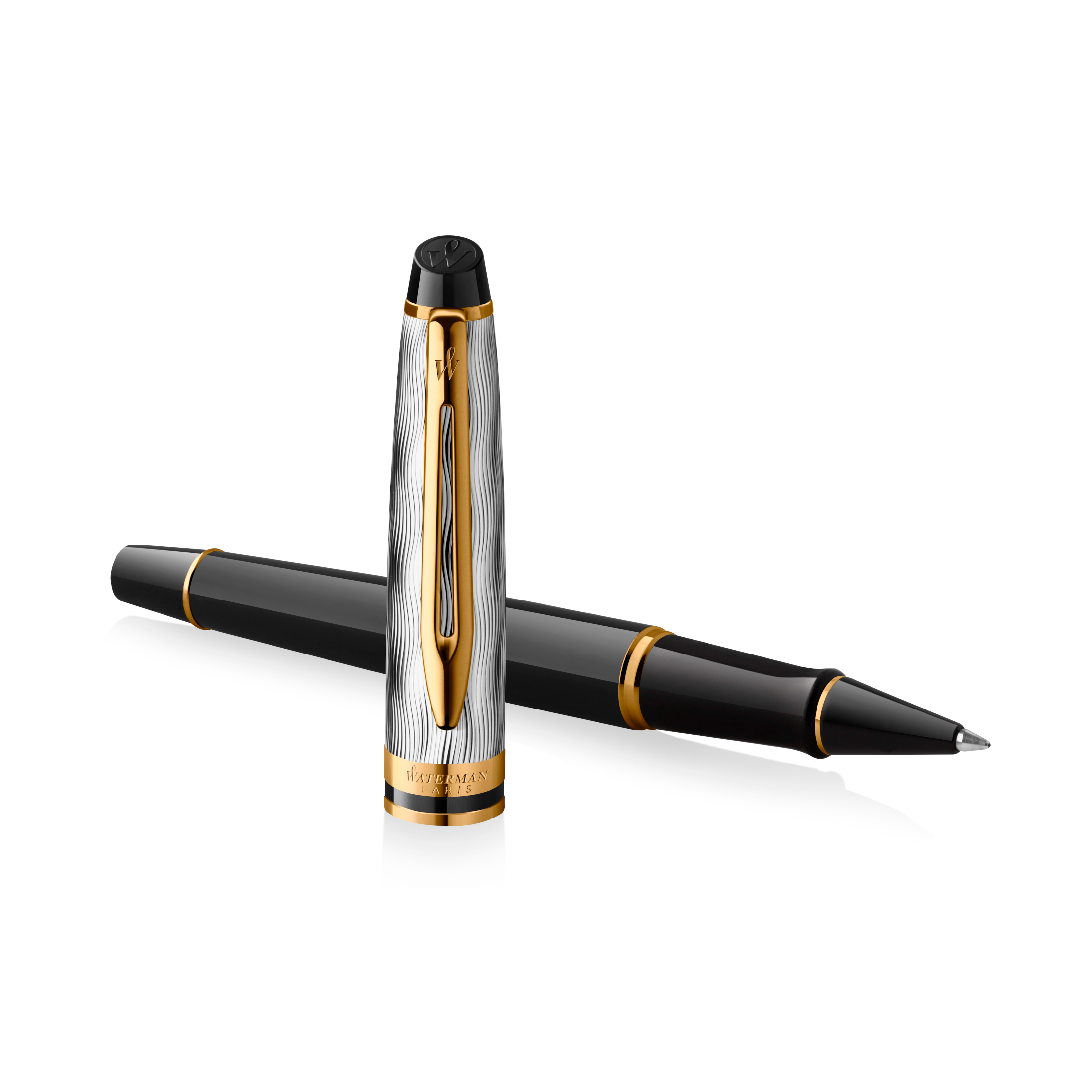 Le corps recouvert d’une laque noire et les finitions plaquées or des stylos Waterman Expert évoquent le charme romantique d’un ciel étoilé parisien surplombant l’éclat doré des cafés et des avenues de la ville. Dans le même temps, le design de vagues exquis du capuchon finition palladium ciselé reflète les ondulations délicates de la Seine. La pointe du stylo roller, fabriquée avec un savoir-faire exceptionnel, allie la tradition de l’encre liquide au confort et à l’ergonomie. Chaque stylo est méticuleusement assemblé à la main en France, reflétant ainsi le savoir-faire français de Waterman.