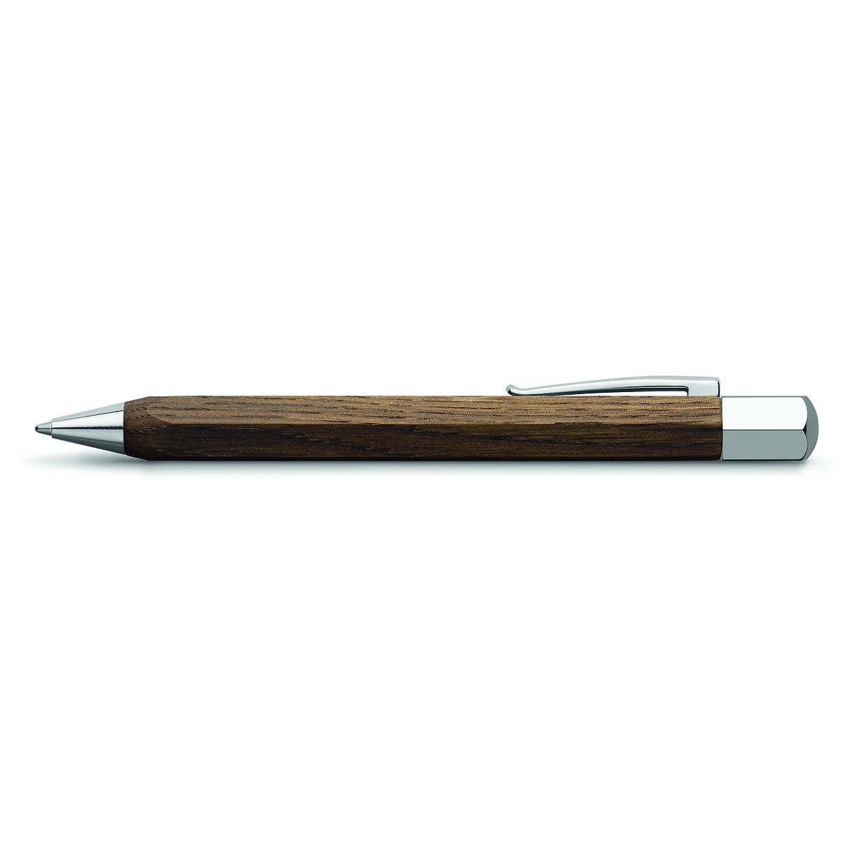 Stylo avec un corps en chêne fumé. Attributs en métal chromé poli. Livré avec un joli coffret cadeau.