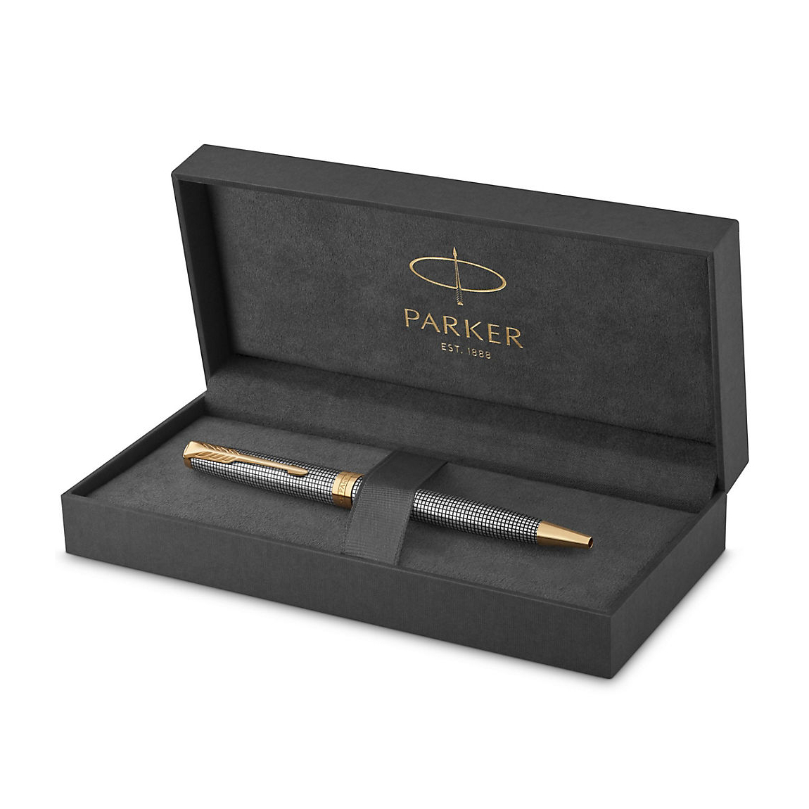 Stylo-bille Sonnet Argent massif. •Symbole intemporel de l'élégance Parker. •Corps et capuchon en argent massif 925/1000 avec motif ciselé. •Agrafe en forme de flèche et attributs finition or 23 carats. •Taille de la pointe: moyenne. •Ouverture et fermeture avec mécanisme tournant. •Equipé d'une recharge bille Quinkflow pour un flux d'encre optimal et une écriture douce encre bleue. •Présenté dans son élégant étui Parker. Stylo fabriqué en France dans le centre d'excellence de Saint-Herblain (44).