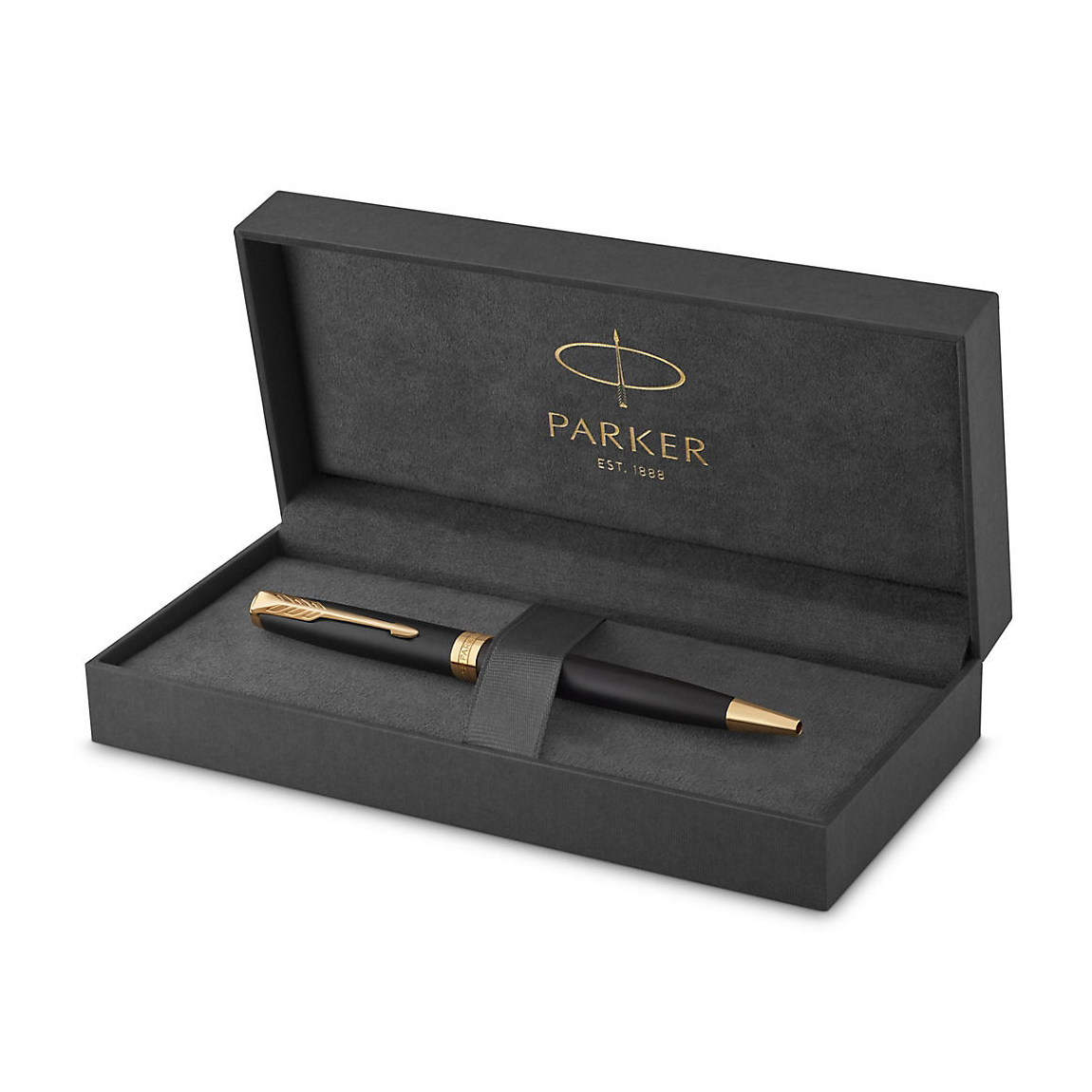 Stylo-bille Sonnet Noir Mat. •Symbole intemporel de l'élégance Parker. •Corps et capuchon avec poudre de résine noire mate effet satiné. •Agrafe en forme de flèche et attributs finition or. •Taille de la pointe : moyenne. •Ouverture et fermeture avec mécanisme tournant. •Équipé d'une recharge bille Quinkflow pour un flux d'encre optimal et une écriture douce encre bleue. •Présenté dans son élégant étui Parker. Stylo fabriqué en France dans le cente d'excellence de Saint-Herblain (44). Nouveauté 2016/2017