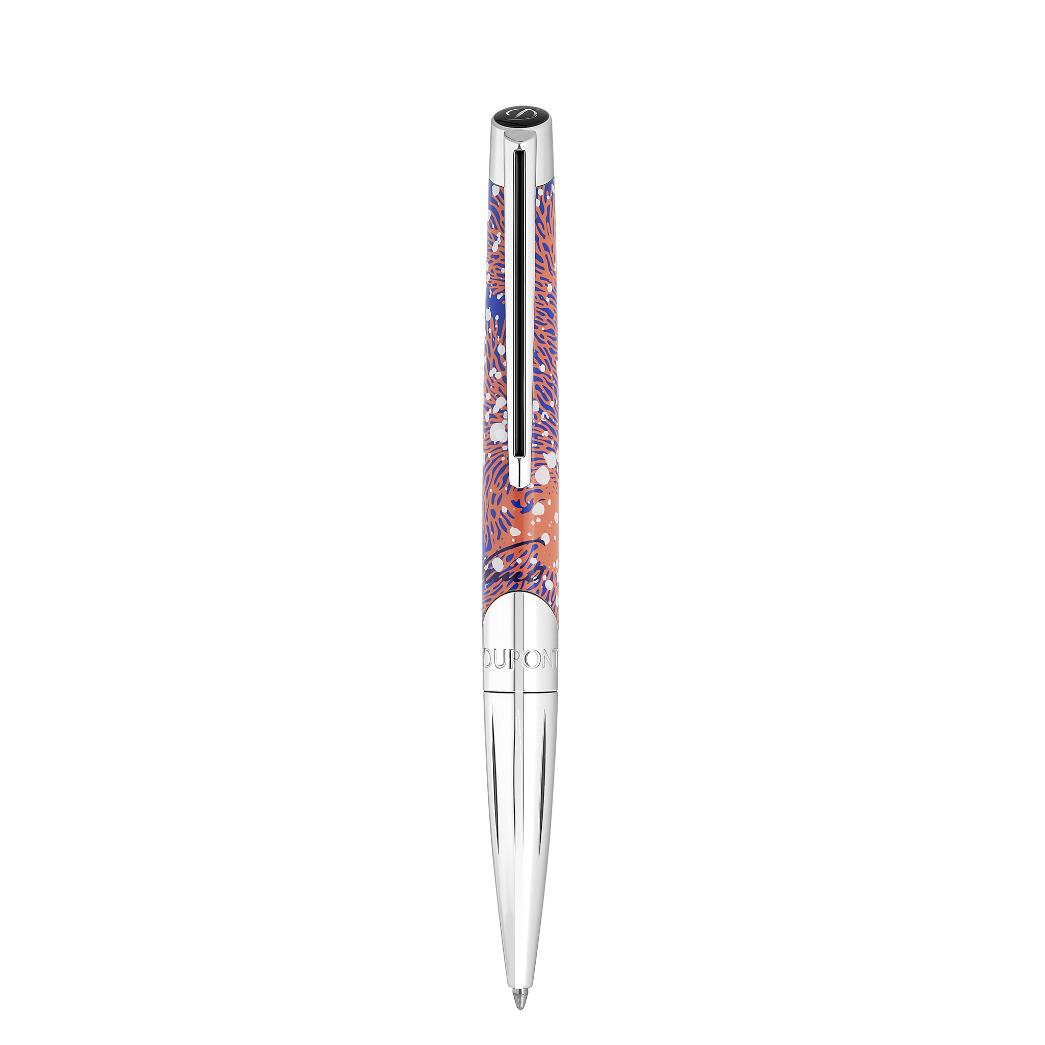 Stylo bille Défi Millenium en laque bleue brillante décorée de bulles et de coraux. Finitions chrome.