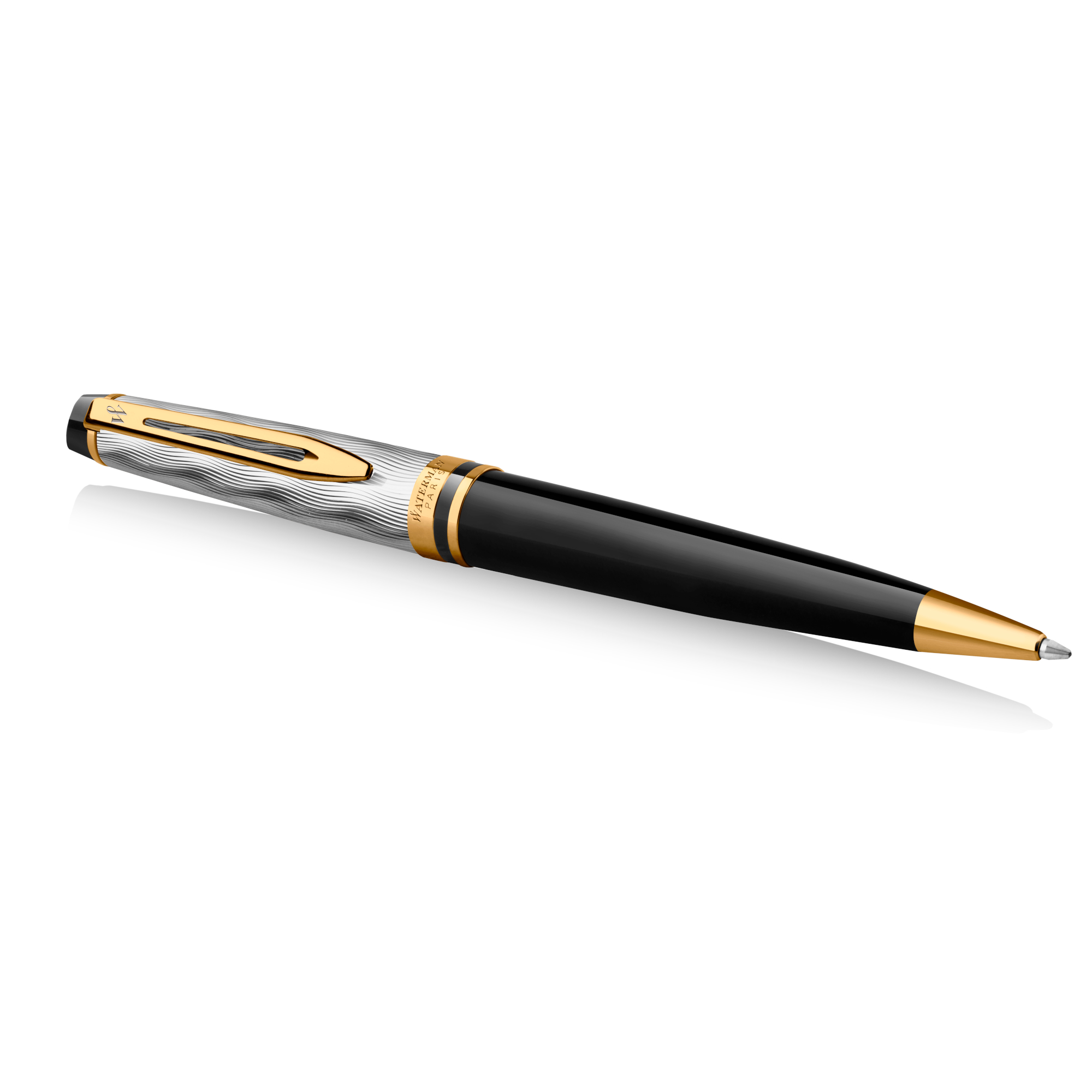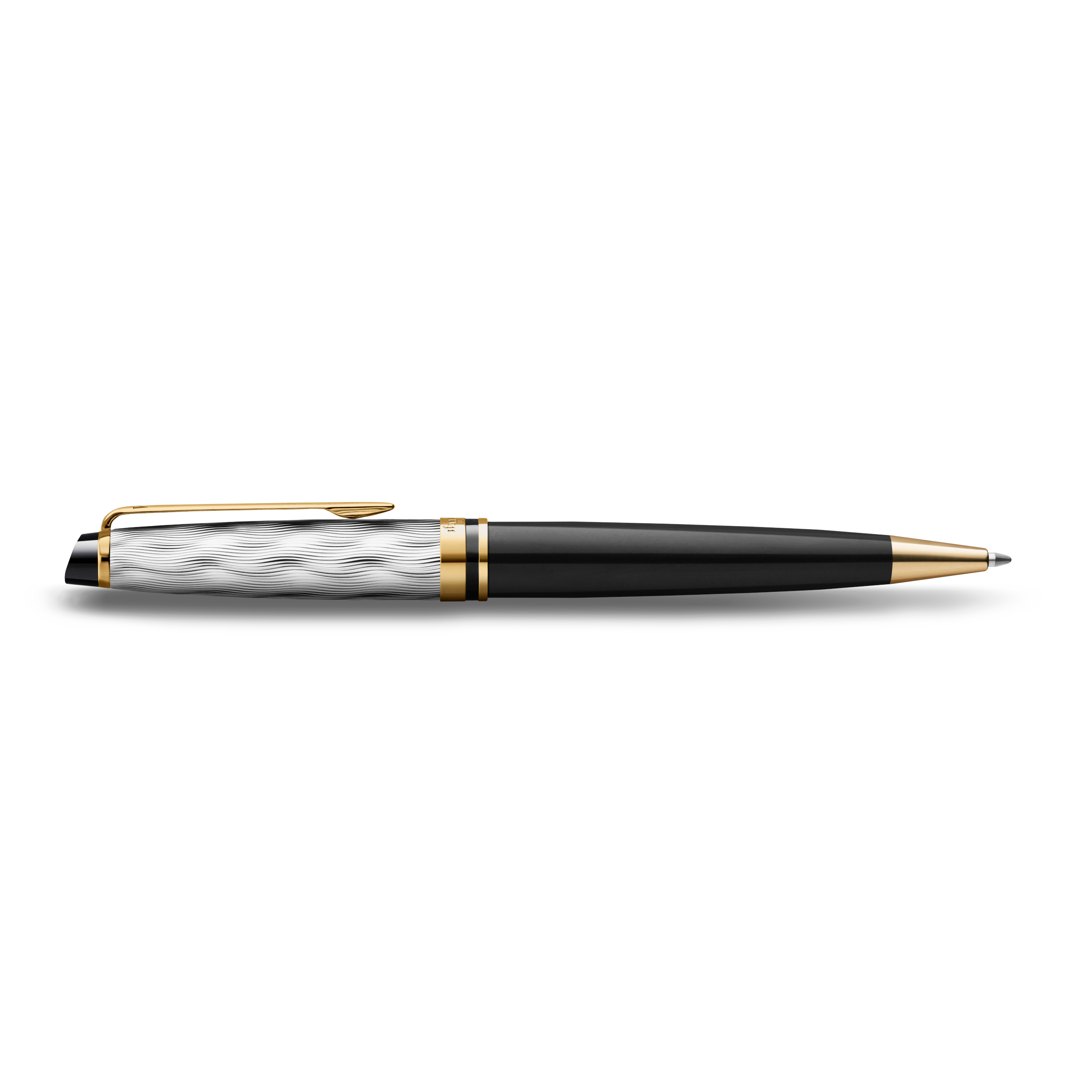 Le corps recouvert d’une laque noire et les finitions plaquées or des stylos Waterman Expert évoquent le charme romantique d’un ciel étoilé parisien surplombant l’éclat doré des cafés et des avenues de la ville. Dans le même temps, le design de vagues exquis du capuchon finition palladium ciselé reflète les ondulations délicates de la Seine. La pointe du stylo bille, fabriquée avec un savoir-faire exceptionnel, produit des lignes impeccables qui sèchent rapidement. Chaque stylo est méticuleusement assemblé à la main en France, reflétant ainsi le savoir-faire français de Waterman.