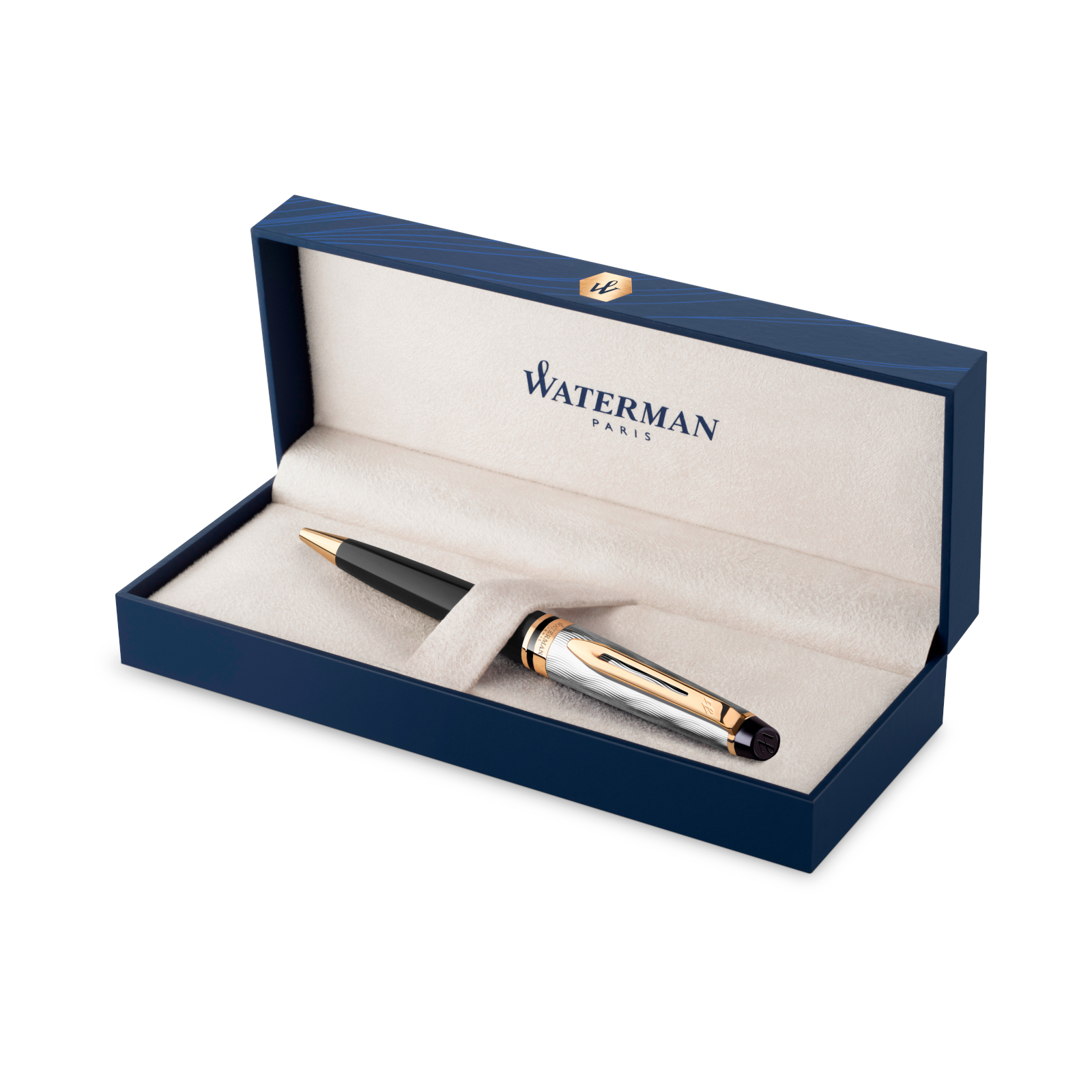 • Il est présenté avec soin dans un coffret cadeau Waterman Prestige, dont le design de vagues envoûtant offre la touche finale à cette luxueuse collection.