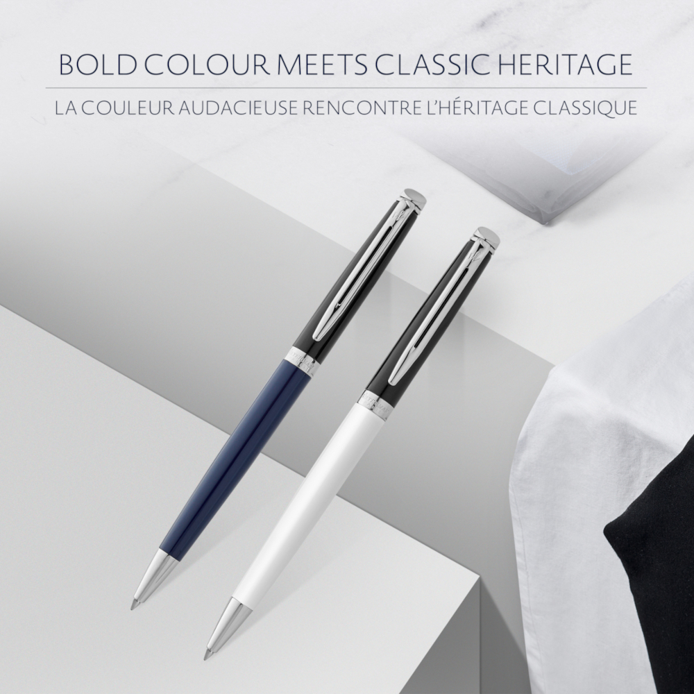 Démarquez-vous grâce à la collection colorée Hémisphère Colour Blocking. S’inspirant de la tendance la plus audacieuse de cette saison, ce stylo plume avant-gardiste se pare avec élégance de noir et de blanc. Sa remarquable allure est mise en valeur par le clip à branche double emblématique classique de Waterman.