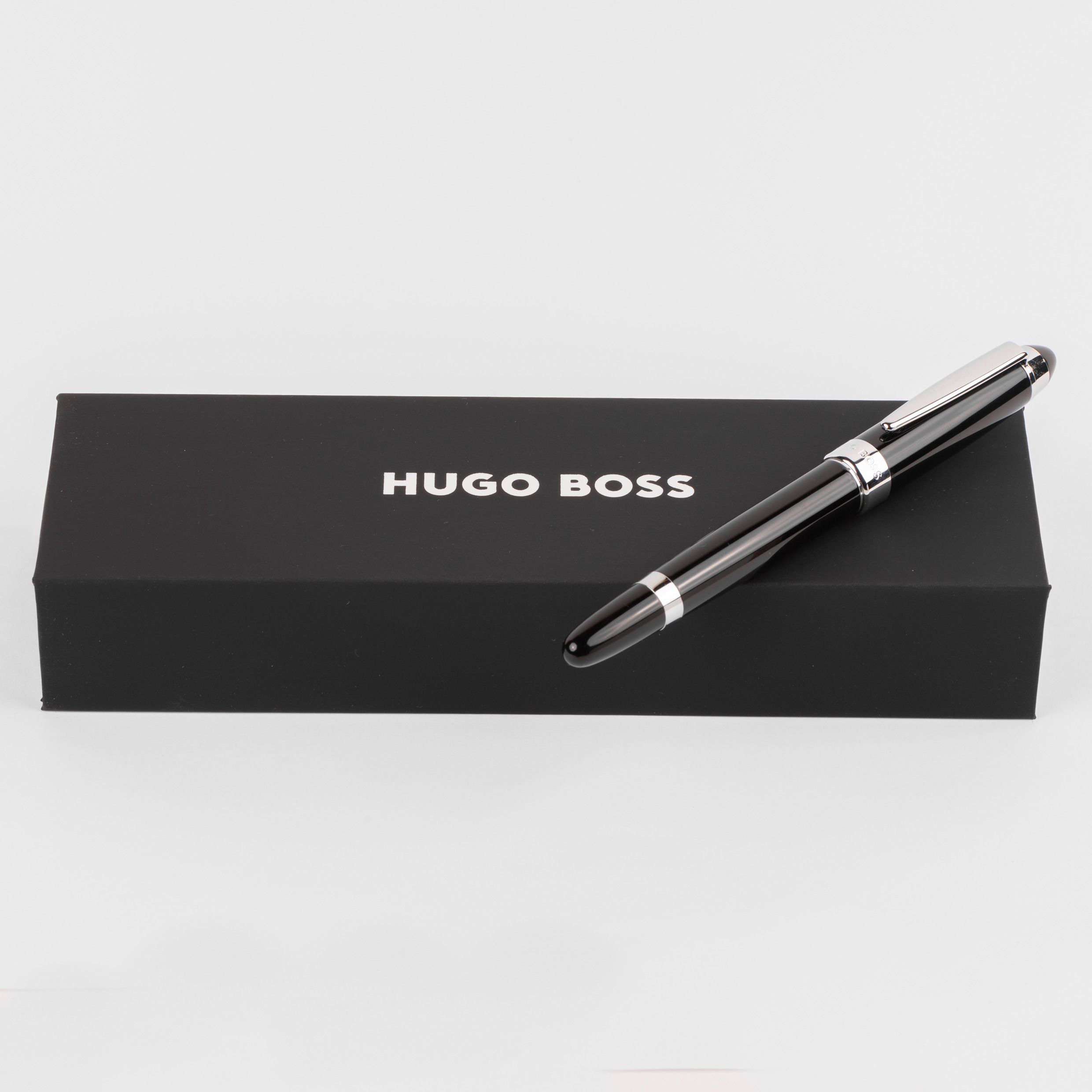 Le stylo plume de la collection Icon au design intemporel se distingue par sa structure aux contours épurés, ornée d'éléments chromés. Il allie habilement maniabilité et design classique minimaliste. Le logo HUGO BOSS est gravé sur le capuchon.