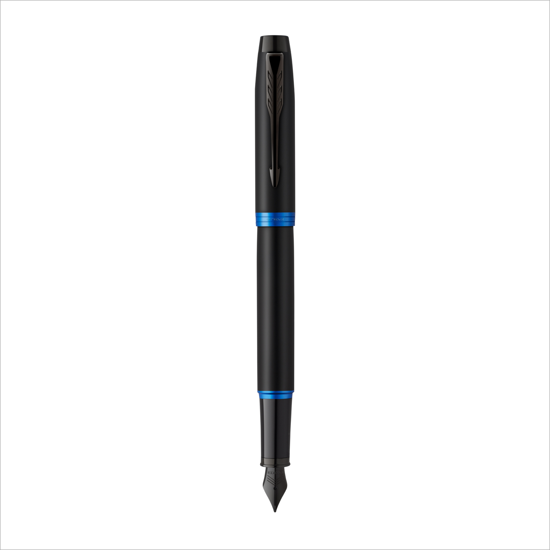 - Stylo Parker avec finitions noir intégral et bagues bleu océan