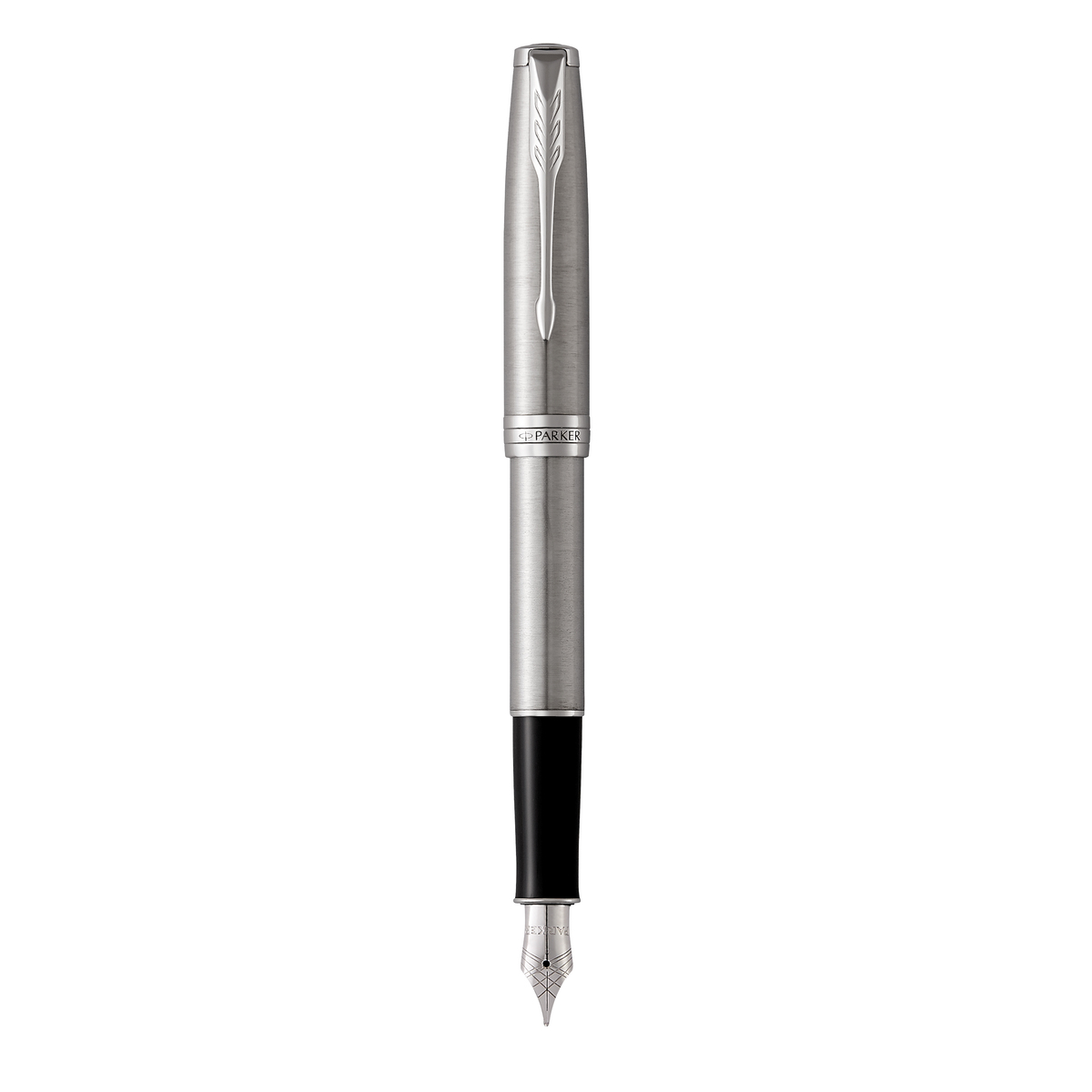 Stylo-plume Sonnet Acier. •Symbole intemporel de l'élégance Parker. •Corps et capuchon en acier brossé inoxydable. •Plume en acier inoxydable. •Agrafe en forme de flèche et attributs finition palladium. •Taille de la plume : fine ou moyenne. •Livré avec cartouche d'encre noire. •Présenté dans son élégant étui Parker. Stylo fabriqué dans le centre d'excellence de Saint-Herblain (44).