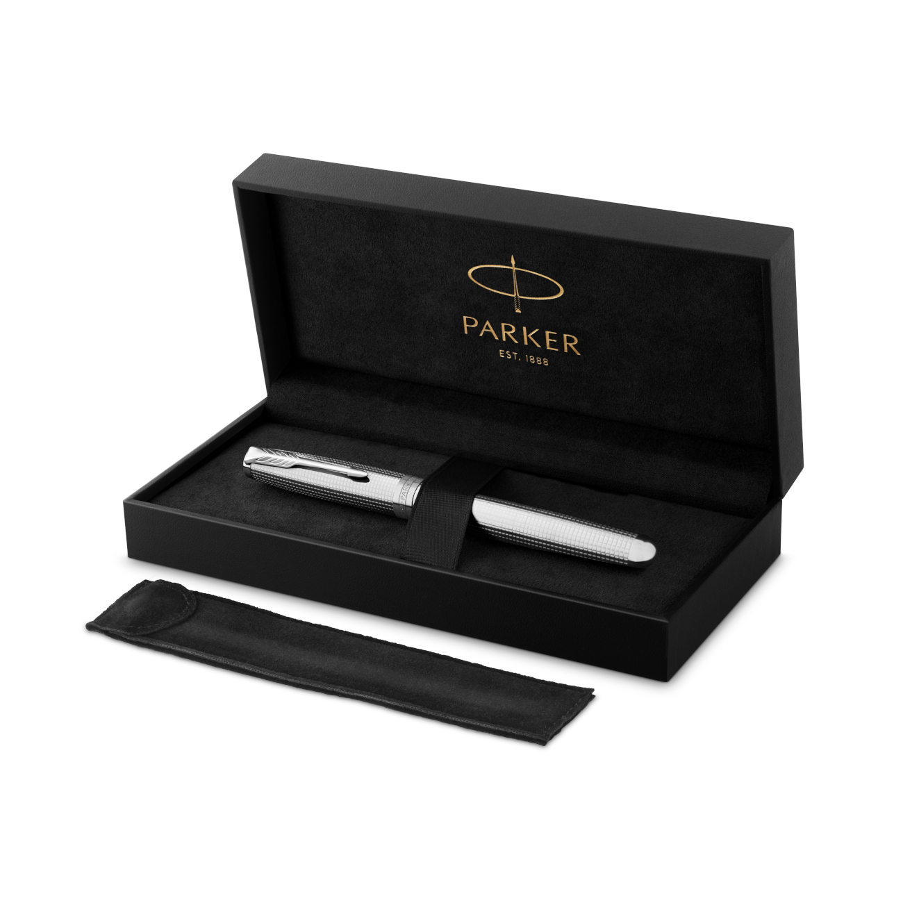 Dans la collection Sonnet Ciselé Édition Spéciale, vous découvrez le parfait croisement entre l’écriture raffinée et la joaillerie. Comme il se doit pour une telle beauté, chaque pièce est présentée dans une boîte- cadeau prestige Édition Spéciale au look cuir premium, noire, accompagnée d’un étui protecteur en tissu doux pour le stylo.