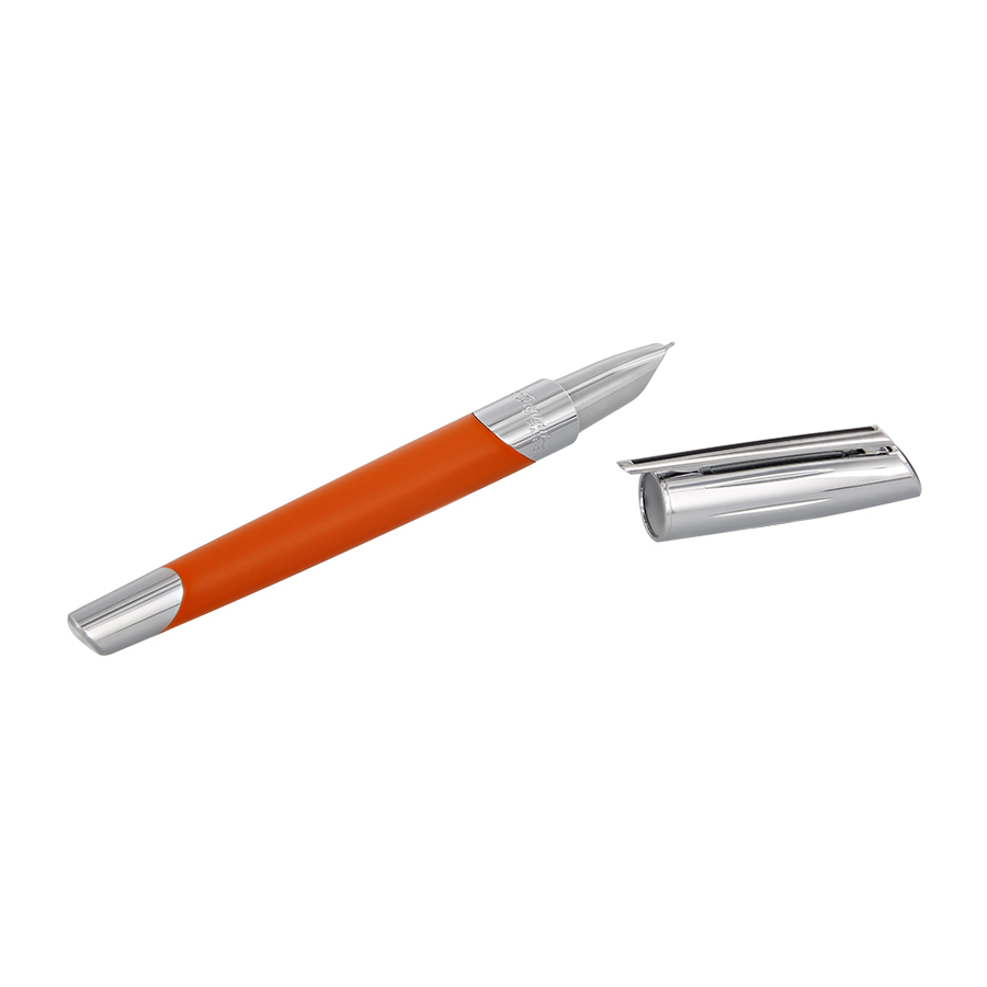 Stylo plume S.T. Dupont Défi Millenium Argenté et orange mat avec son repose stylo