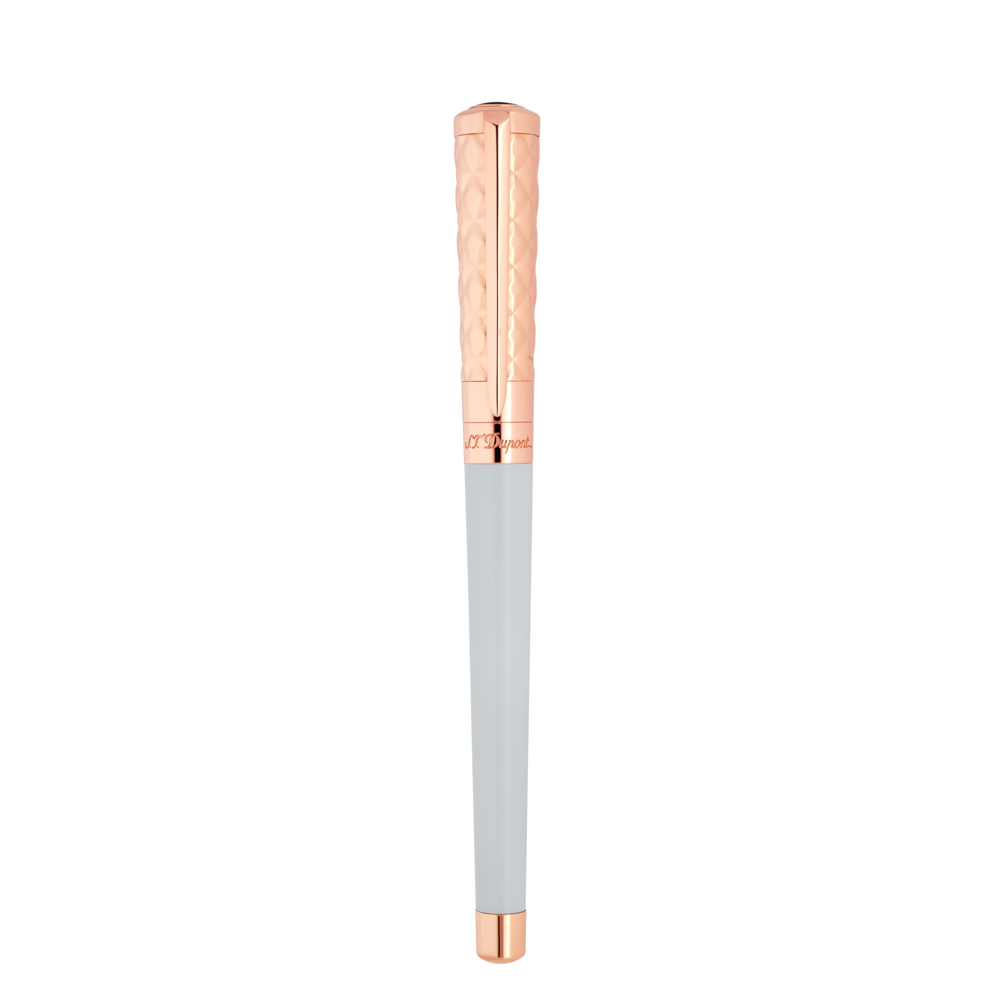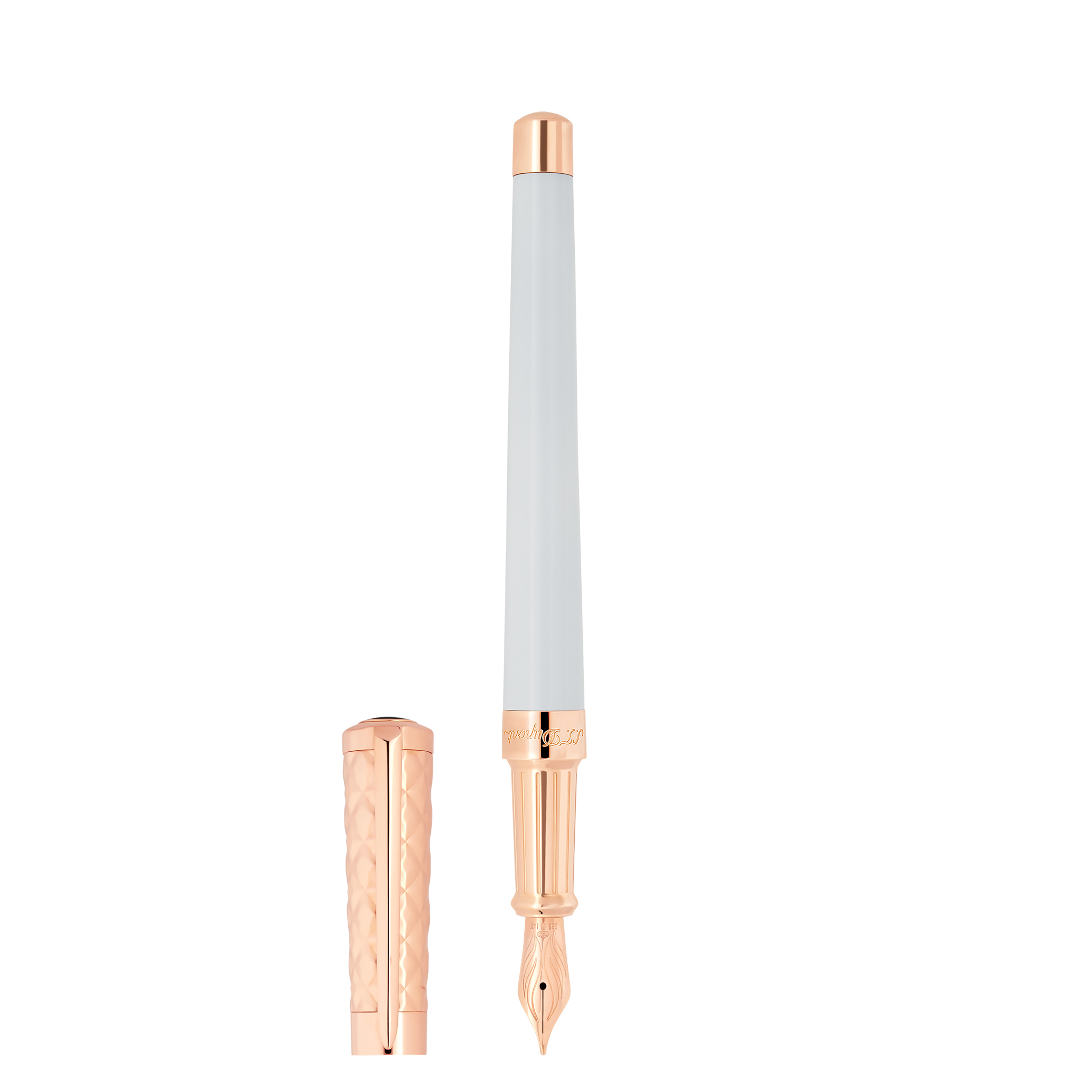 Stylo plume Liberté en laque Dupont blanche. Capuchon orfèvre guilloche matelassée finitions or rose.