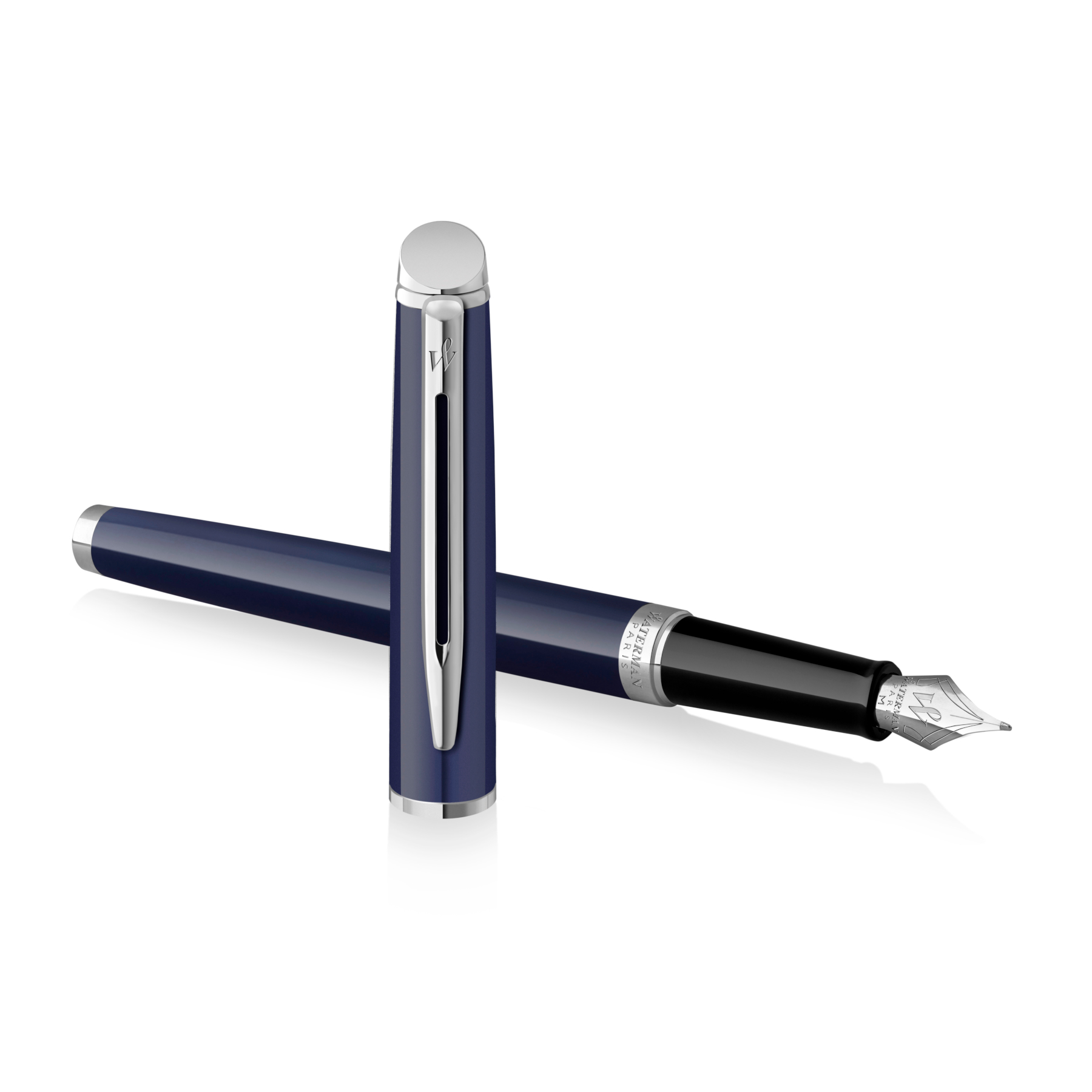 - Rehaussée de l'emblématique « W » en boucle de Waterman, la plume en acier inoxydable est conçue pour offrir une expérience d'écriture fluide et uniforme.