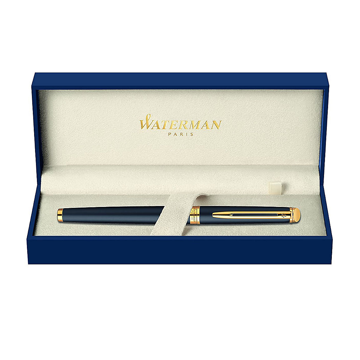 Stylo plume à cartouches. Acier noir mat. Plume dorée. Attributs plaqués or. Livré dans son écrin luxe et avec sa garantie Waterman.Stylo fabriqué en France dans le centre d'excellence de Saint-Herblain (44).