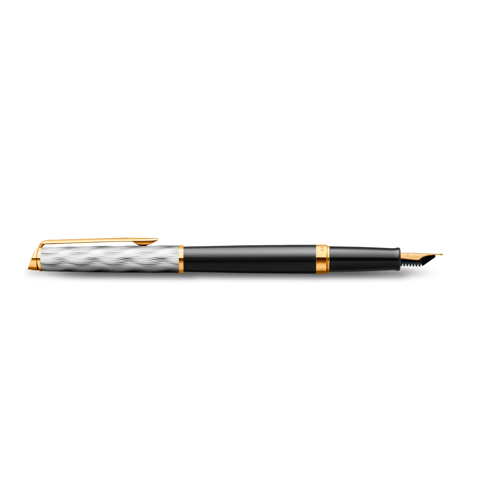 - La finesse sophistiquée et la laque noire intense du corps se marient au design de vagues exquis du capuchon finition palladium ciselé, évoquant les reflets envoûtants d’une nuit parisienne sur la Seine.