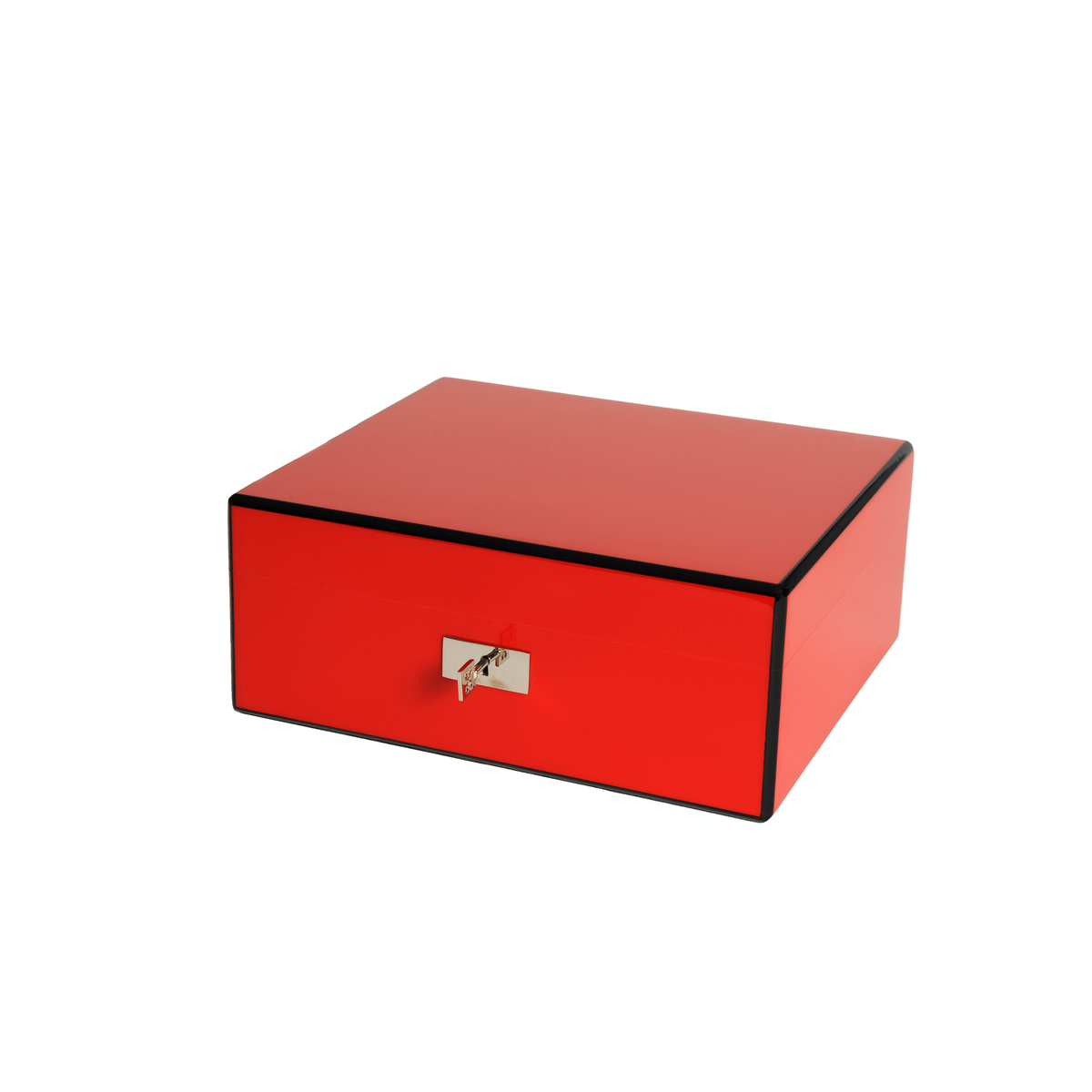 Coffret pour 50 cigares. Laqué rouge avec liseré noir. Charnières et accessoires en métal chromé, fermeture à clef. Emballage luxe. indicateur électronique d’humidité (hydromètre) qui indique également la température. Système qui permet de mémoriser le minimum et le maximum de température et d'hydrométrie !!! Fonctionnement avec pile réf : CR2032 LITHIUM fournie. Emballage luxe. Dimensions : 275x235x115 mm. Nouveauté.